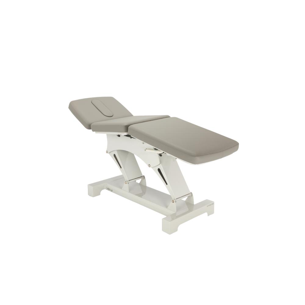 Die Vera TP3 Behandlungsliege ist eine robuste, funktionale 3-teilige Therapie- und Behandlungsliege mit Trendelenburg- Funktion. Sie eignet sich ideal für verschiedene Positionen, einschließlich sitzender Lage, Rückenlage, Lendenwirbelsäulenmanipulationstechniken und Trendelenburg- Lagerung. Dank fortschrittlicher Chassis- Fertigung bietet die TP3 maximale Stabilität in allen Höhen- und Positionseinstellungen. Sanfte, präzise Bewegungen der Elektromotoren ermöglichen eine flexible Positionierung und sorgen für optimale Arbeitsbedingungen für den Anwender sowie höchsten Komfort für den Patienten. Das integrierte Höhenverstellsystem ist im oberen Teil der Liege untergebracht, wodurch ein schlankes Gestell entsteht. Dies erleichtert die Reinigung und unterstützt ein modernes, hygienisches Design.