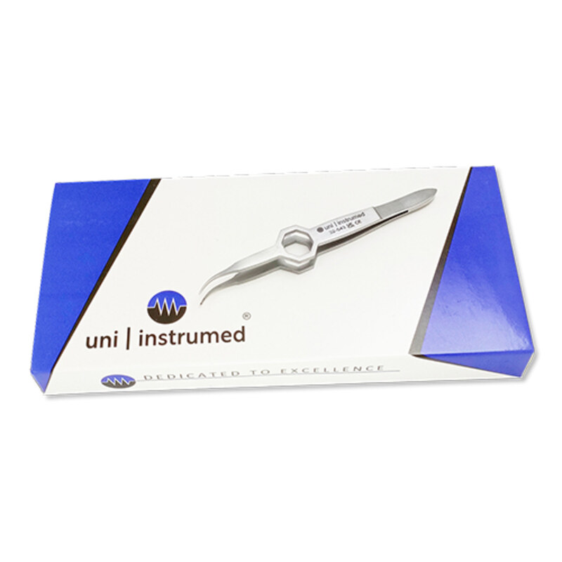 Die Pinzetten sind in verschiedenen Ausführungen erhältlich: gerade oder gekrümmt, mit glatter Spitze, serrierter Spitze oder mit Zahnprofil (1x2).