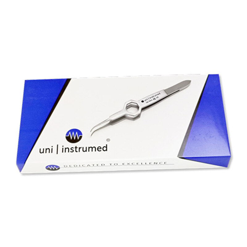 Die Pinzetten sind in verschiedenen Ausführungen erhältlich: gerade oder gekrümmt, mit glatter Spitze, serrierter Spitze oder mit Zahnprofil (1x2).