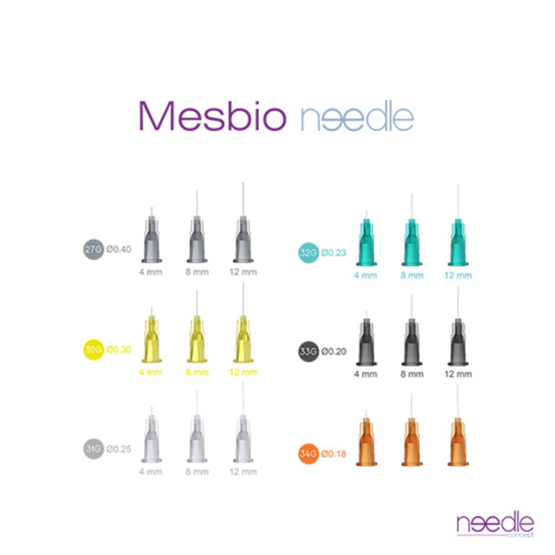 Mesbio® Needle – intradermale und hypodermische Nadeln für Mikroinjektionen. Ultrafeine Mikronadeln, nahezu schmerzfrei in der Anwendung. Die Mesbio® Needle wurde speziell für ästhetische Injektionstechniken und die Mesotherapie entwickelt. Sie kombiniert präzise Fertigung, optimale Rigidität und ein sanftes  Eindringen in das Gewebe, um maximale Sicherheit und Effizienz bei jeder Anwendung zu gewährleisten. Die Nadel ist für intradermale und subkutane Injektionen bestimmt – ideal für präzise Anwendungen, Auffrischungen, kleine Behandlungsbereiche und Injektionen in oberflächliche Hautschichten. Geeignet zum Injizieren von Botulinumtoxin, Fillern, plättchenreichem Plasma (PRP) und für die Mesotherapie.