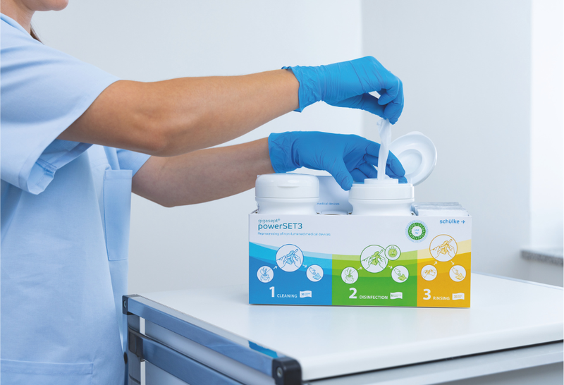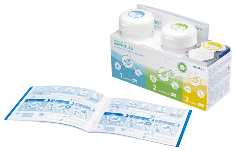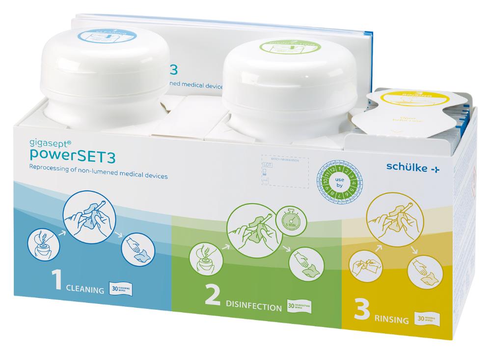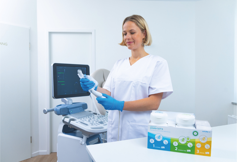Einfach und sicher: Das gigasept® powerSET3 erfüllt die KRINKO/BfArM-Anforderungen für Ultraschallsonden mit Schleimhautkontakt. Ein Set ist für 30 Anwendungen geeignet.