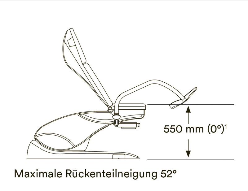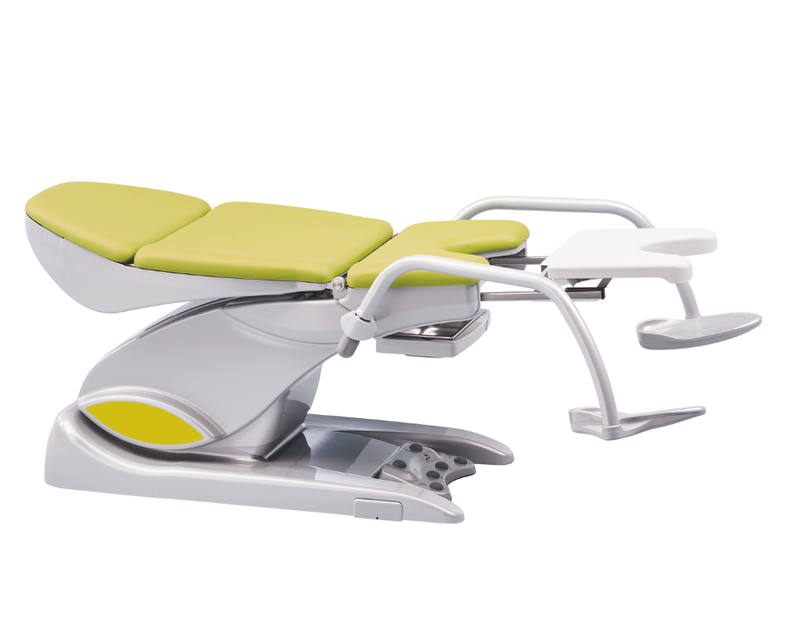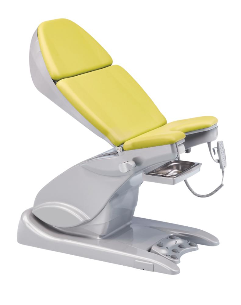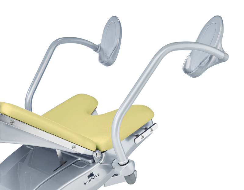Eine Polsterbreite von bis zu 680 mm im Rückenbereich und ein individuell anpassbares Kopfpolster mit Magnetbefestigung bieten der Patientin ein angenehmes und komfortables Sitzgefühl. Mit einer Aufstiegshöhe von nur 550 mm können auch ältere oder körperlich eingeschränkte Patientinnen bequem Platz nehmen, die Sitzposition bleibt auch in tiefster Stellung waagerecht.