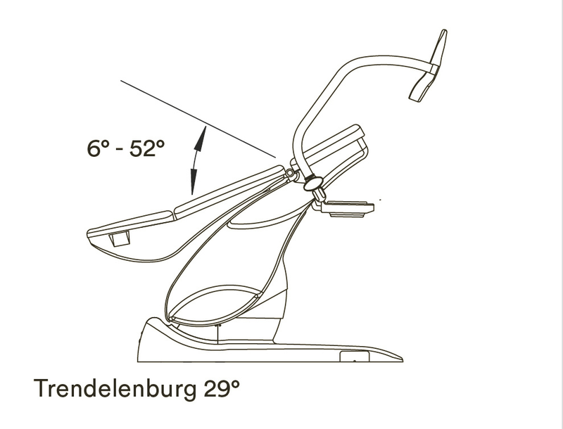 Die Rückenlehne lässt sich in eine waagerechte Position bringen, so dass eine Ultraschalluntersuchung sowie eine Schocklagerung im Notfall möglich ist.